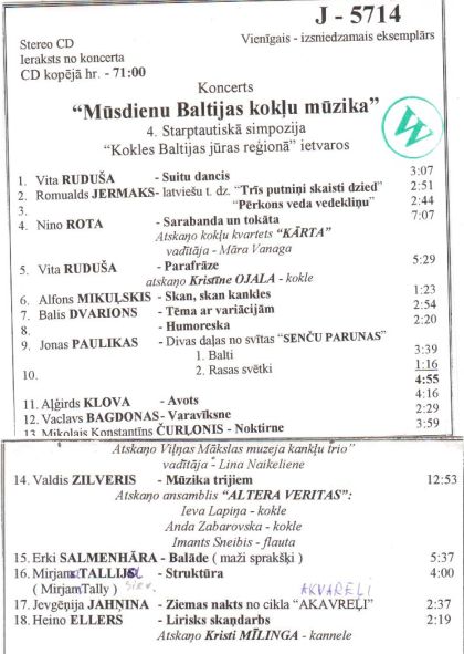 Ieraksta diska kastītes aizmugure. Foto: Latvijas Radio