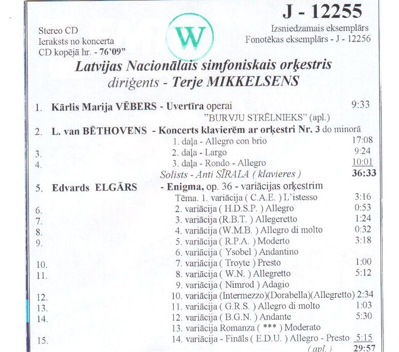 Ieraksta diska kastītes aizmugure. Foto: Latvijas Radio