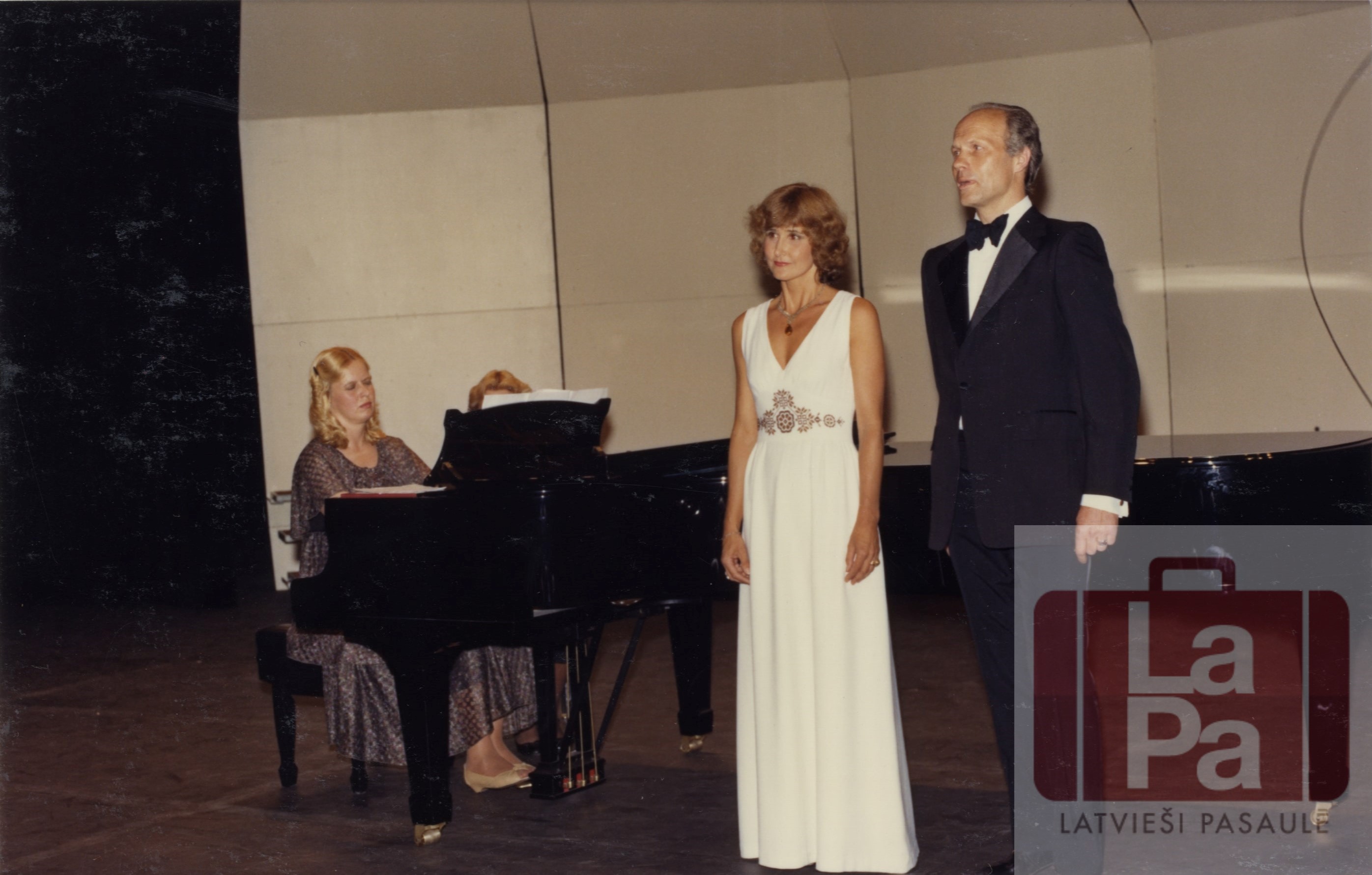 9. Rietumkrasta Dziesmu svētki Portlandē, Oregonā, ASV no 1982. gada 30. jūnija līdz 5. jūlijam. Solistu koncerts. No labās: Kārlis Grīnbergs, Olga Driķe, pie klavierēm Brigita Ritmane.