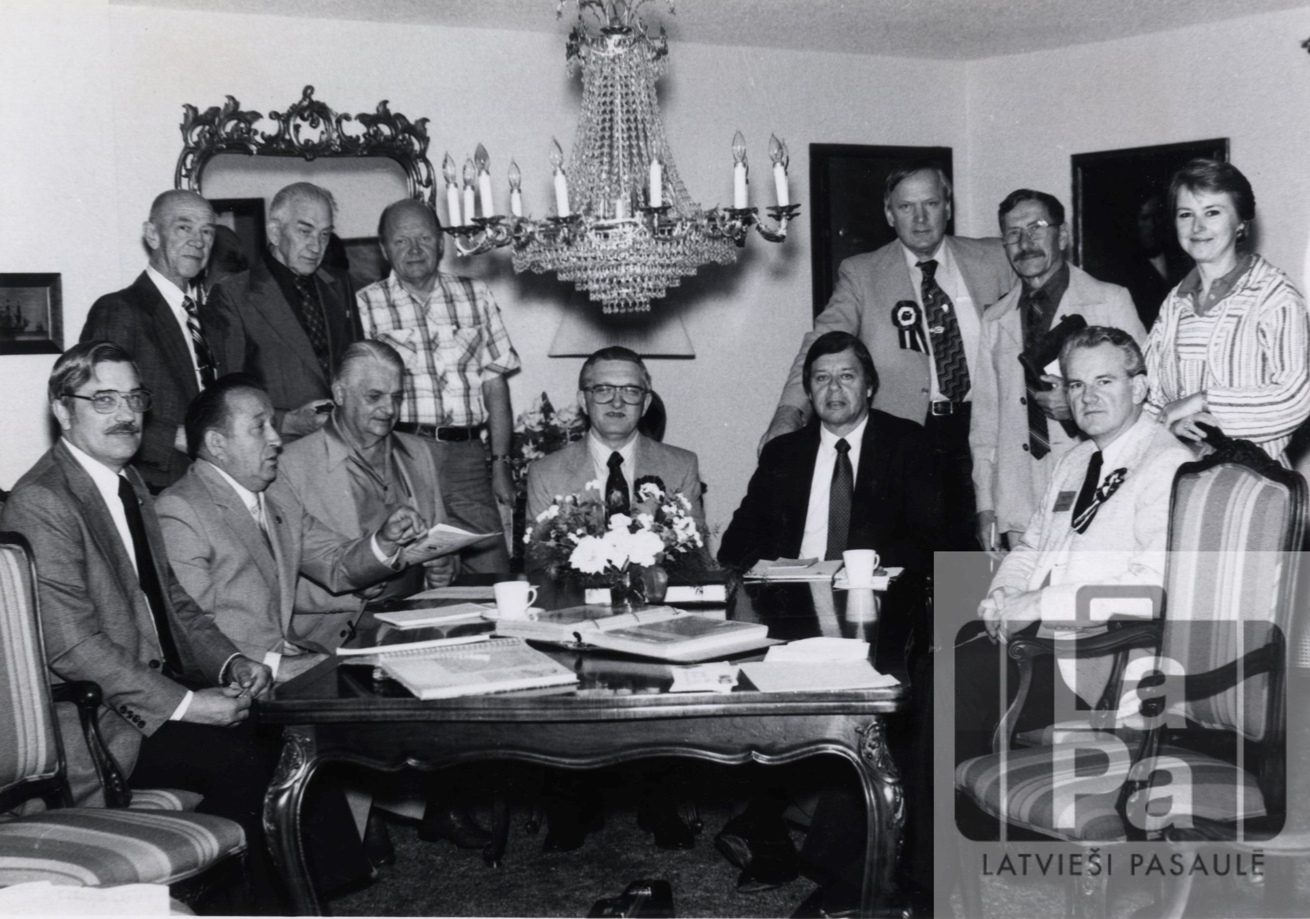 Sēž no kreisās: Miervaldis Janševics, Alberts Pūpols, Voldemārs Švāns, Juris Jurisons, Jānis Taube, Jānis Zommers.