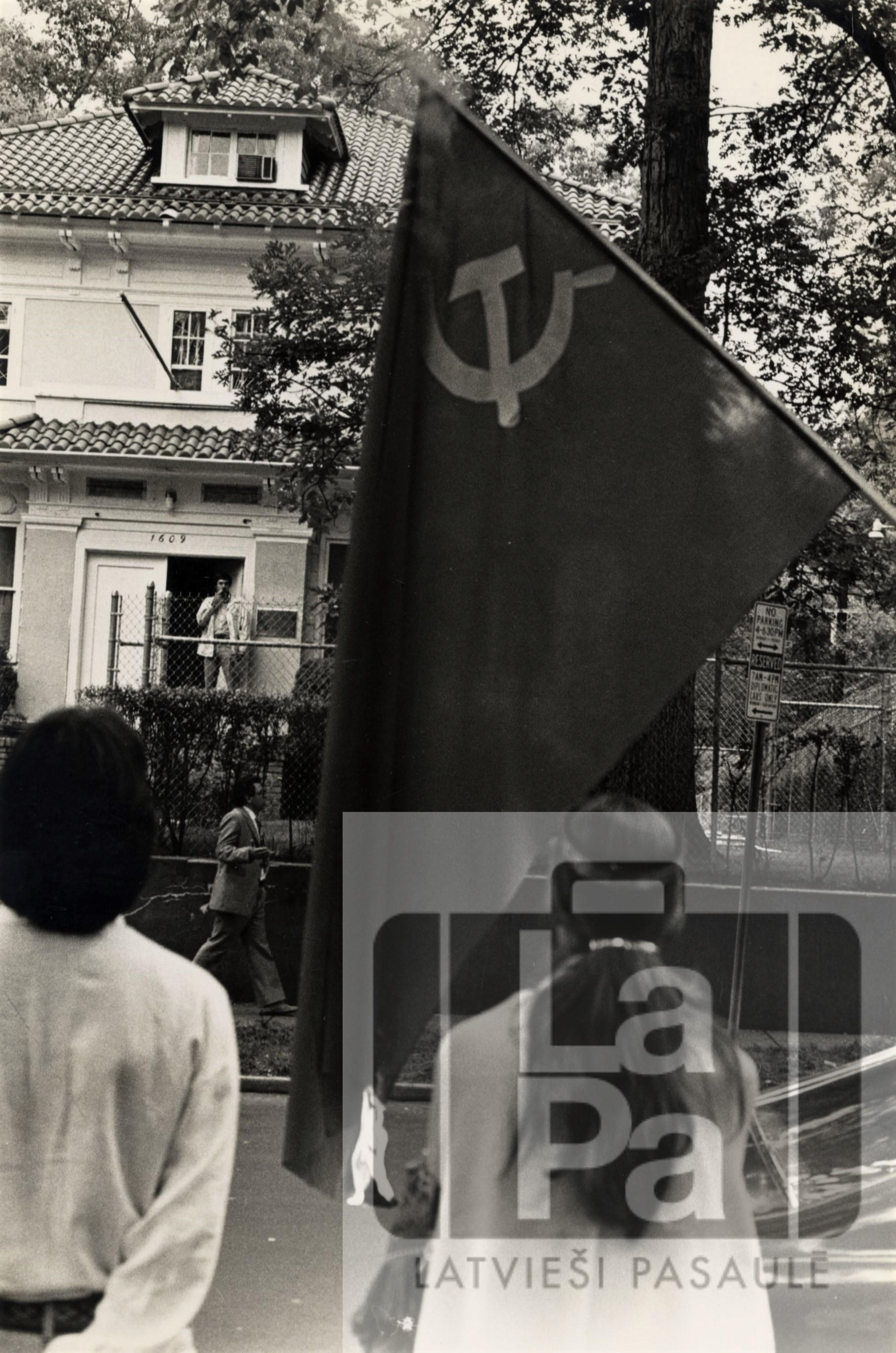 Vašingtonas 7' demonstrācija Vašingtonā 1976. gadā. Pie PSRS vēstniecības tiek dedzināts PSRS karogs.