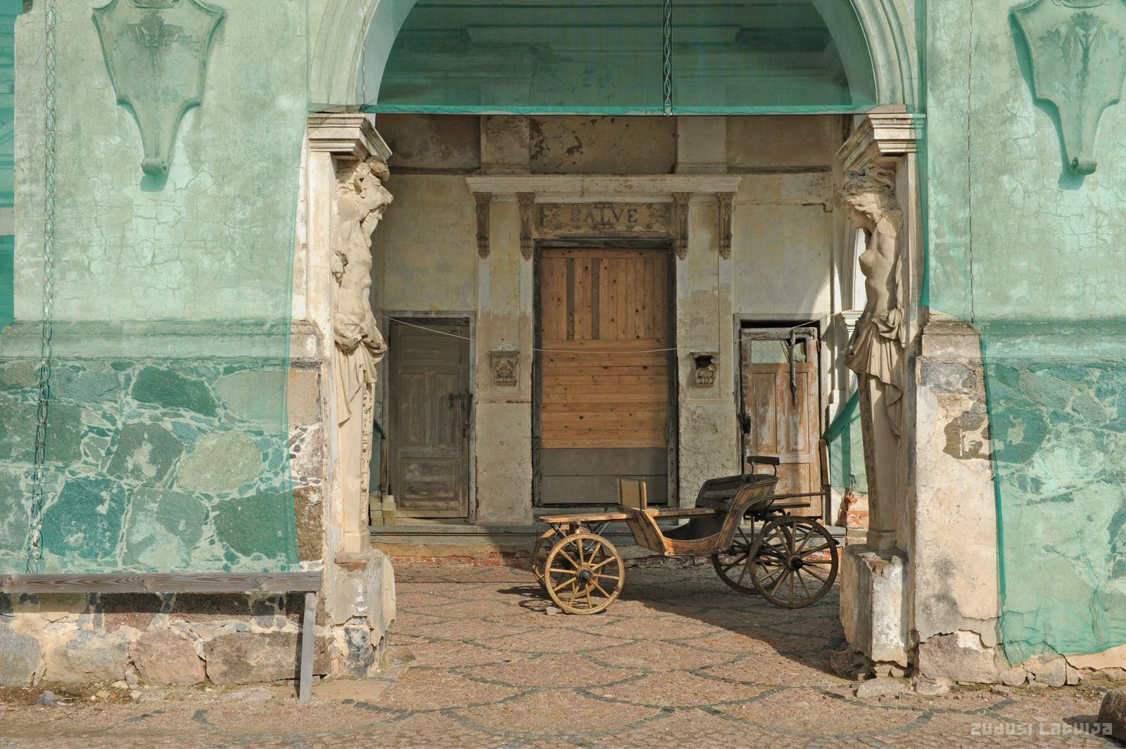 Gulbenes (Vecgulbenes) muižas Baltā pils. Galvenās ieejas skulptūras