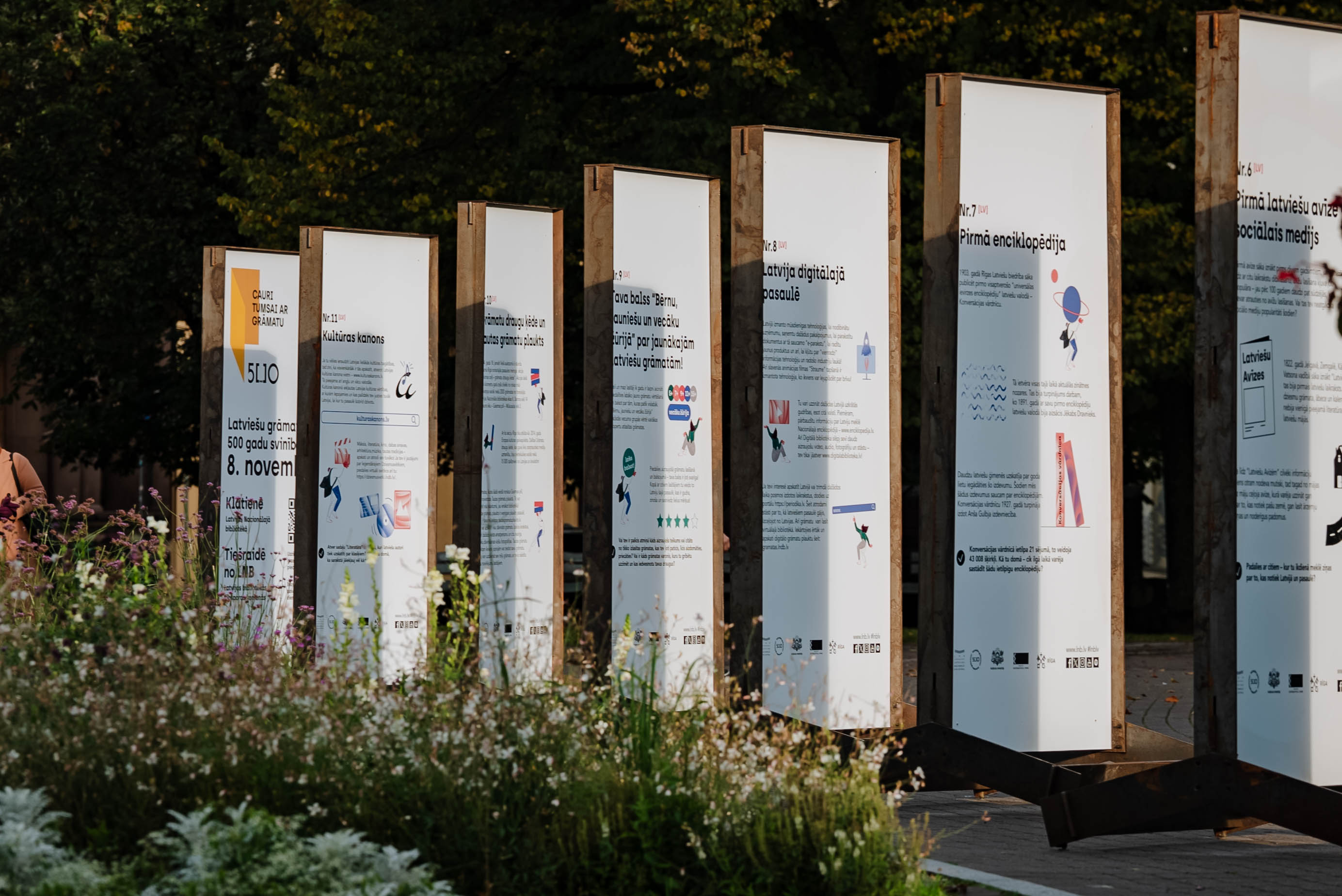 Latvijas Nacionālā bibliotēka sadarbībā ar Rīgas valstspilsētas pašvaldību no 17. oktobra līdz 9. novembrim ikvienam interesentam piedāvā apskatīt plakātu izstādi Līvu laukumā, kas veltīta latviešu grāmatniecības piecsimtgadei. Izstāde ievada notikumu cikla “Latviešu grāmatai 500” kulminācijas notikumus novembra sākumā. Plakāti ir pieejami arī angļu valodā, dodot iespēju Rīgas apmeklētājiem no ārvalstīm uzzināt vairāk par latviešu valodu, grāmatniecību un kultūru.