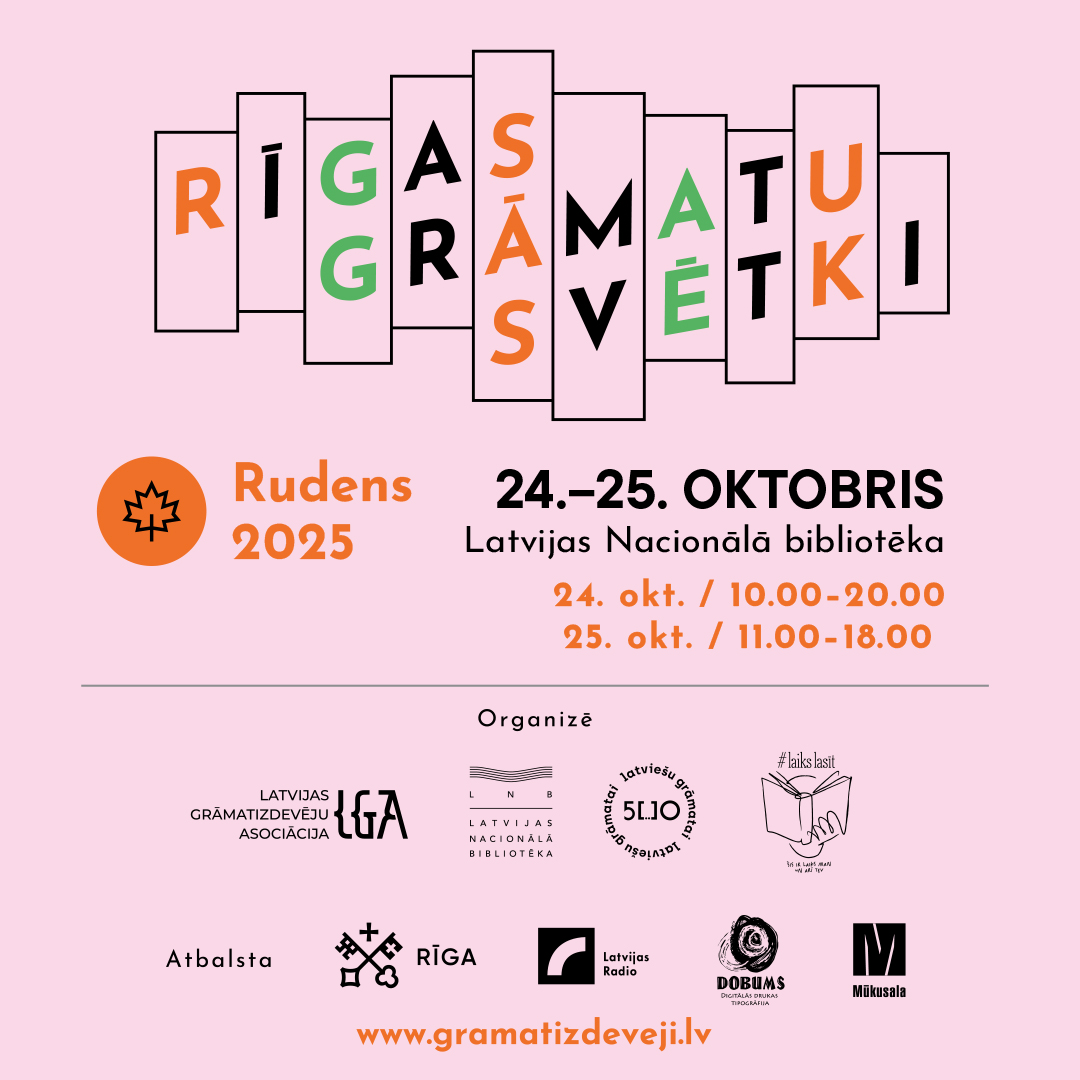 Latvijas Grāmatizdevēju asociācija un Latvijas Nacionālā bibliotēka aicina ievākt bagātīgo rudens grāmatu ražu Rīgas Grāmatu svētkos – lasītāju, izdevēju, autoru un mākslinieku iecienītajā tikšanās reizē. Svētki notiks Latvijas Nacionālajā bibliotēkā, Mūkusalas ielā 3, 24. oktobrī no plkst. 10.00 līdz 20.00 un 25. oktobrī no plkst. 11.00 līdz 18.00. Svētku oficiālā atklāšana – LNB Draugu telpā (1. stāvā) 24. oktobra plkst. 11.00. Rīgas Grāmatu svētkos piedalīsies 31 izdevējs – būs sarūpēti jaunumi, krāsaini kā rudens lapas, tikšanās ar autoriem, diskusijas un radošās darbnīcas.