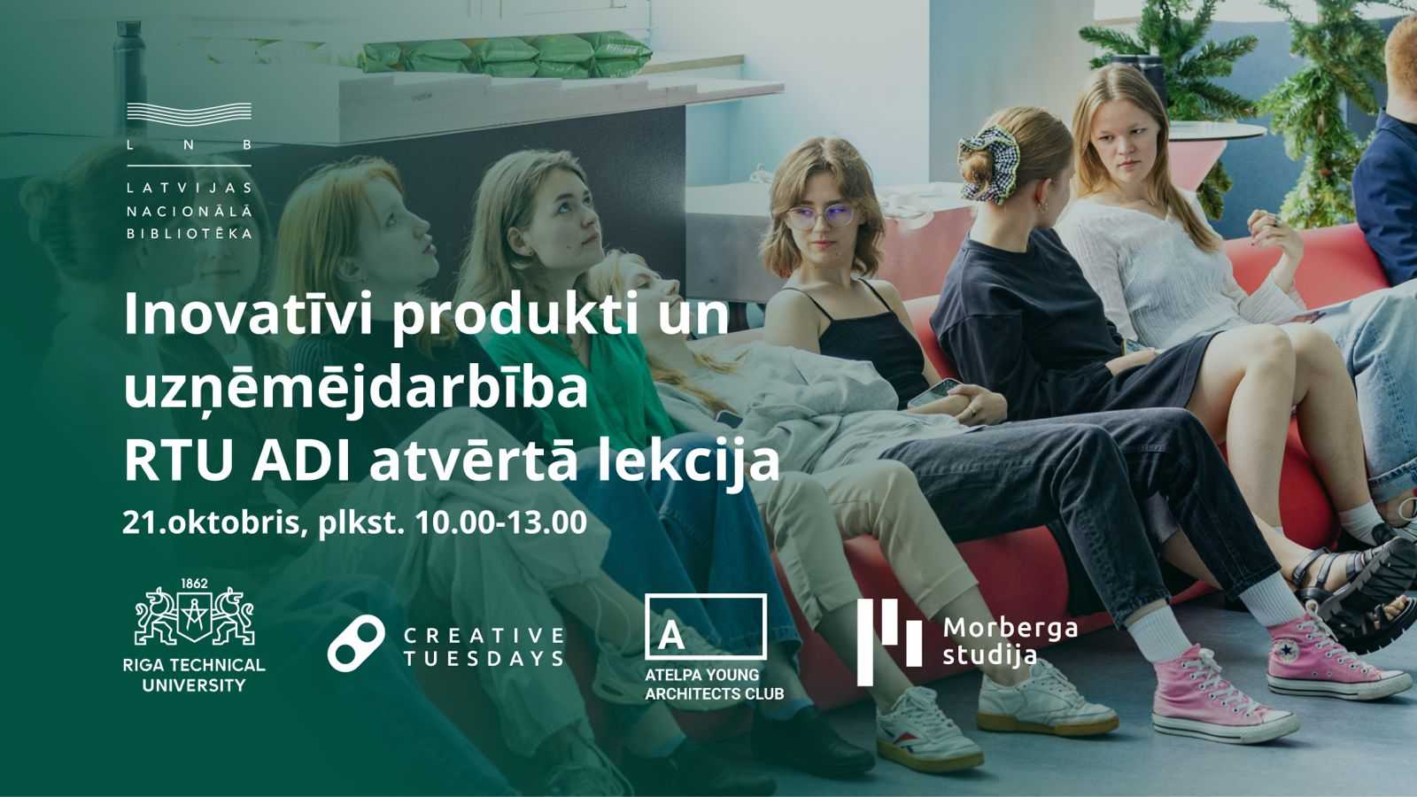 21. oktobrī plkst. 10.00 Latvijas Nacionālajā bibliotēkā, Jauniešu telpā (M stāvā), notiks atvērtā lekcija Rīgas Tehniskās universitātes Arhitektūras un dizaina institūta 2. kursa studentiem. Lekcijas tēma: “Inovatīvu produktu izstrāde un uzņēmējdarbība.” Lekciju vadīs Mg. arch.