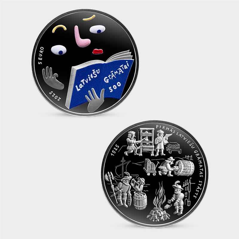 radījusi monētu, kurā apvienots gan zīmīgais pirmās latviešu valodā iespiestās grāmatas stāsts, gan grāmatu lasītāja nozīme. 8. novembrī latviešu grāmatniecības piecsimtgades kulminācijas notikumā “Cauri tumsai ar grāmatu” plkst. 14.00 LNB 1. stāvā notiks monētas svinīgais dāvinājums, izskanēs Latvijas Bankas prezidenta Mārtiņa Kazāka un LNB direktores Dagnijas Baltiņas uzruna, Latvijas Bankas monētu dizaina komitejas locekļa, galvenā dizaina un mākslas eksperta Edgara Zvirgzdiņa stāstījums par monētas tapšanu.