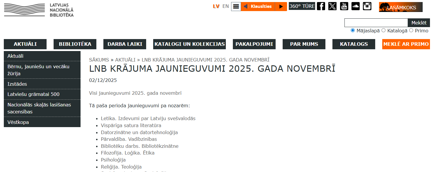 Piedāvajam iepazīties ar LNB krājuma jaunieguvumi 2025. gada novembrī!