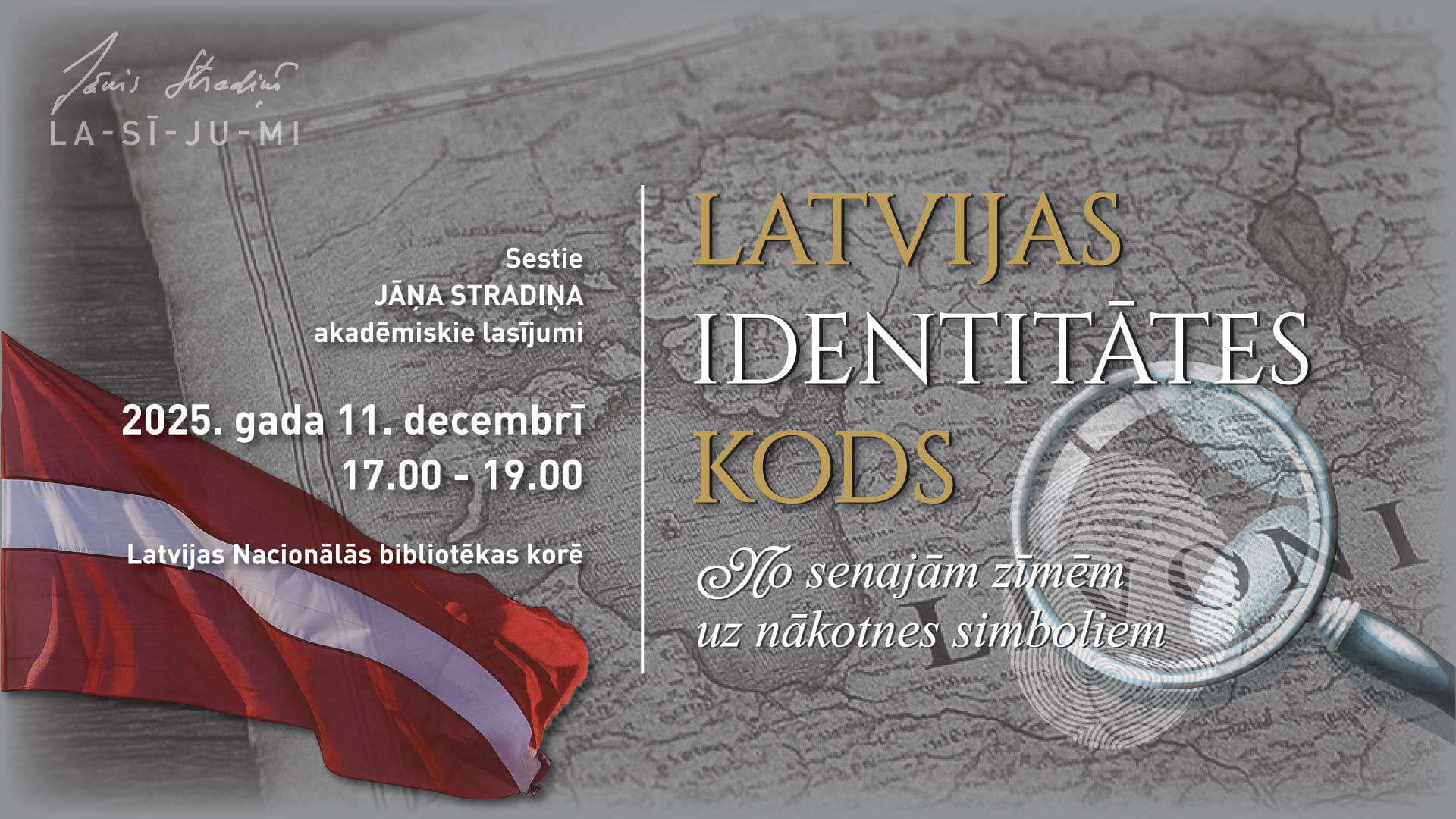 2025. gada 11. decembrī plkst. 17.00–19.00 Latvijas Nacionālās bibliotēkas korē notiks lasījumi, kas tradicionāli veltīti akadēmiķa Jāņa Stradiņa (1933–2019) atcerei. Šogad meklēsim Latvijas identitātes kodu – atskatīsimies senvēsturē, ielūkosimies heraldikas pasaulē un domāsim par piederības nozīmi nākotnē. Pasākumā uzstāsies: Latvijas Universitātes Latvijas vēstures institūta vadošais pētnieks, vēsturnieks Guntis Zemītis, heraldikas speciālists un mākslinieks Edgars Sims, Valsts Heraldikas komisijas priekšsēdētaja vietniece, mākslas zinātniece Ramona Umblija, zīmolu dizaina studijas “Asketic” līdzdibinātājs un grafikas dizainers Miķelis Baštiks. Diskusiju vadīs žurnāliste Sandra Kropa.